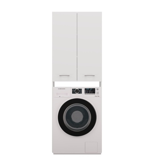 Biały słupek na pralkę pozwala na estetyczne i praktyczne zabudowanie pralki o szerokości do 60 cm. Dzięki otwartej wnęce na pralkę bez drzwi, masz zapewniony szybki i wygodny dostęp do urządzenia, co czyni codzienne pranie łatwiejszym. Dolna część słupka jest otwarta z tyłu, co znacznie ułatwia podłączenie pralki do instalacji. Poprzeczka wzmacniająca konstrukcję zapewnia stabilność całego mebla.