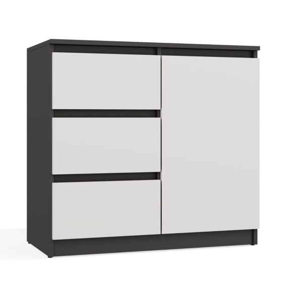 Komoda KOM-910-ANT-BIEL-MAT to stylowe i funkcjonalne rozwiązanie dla osób ceniących nowoczesne i modne połączenie kolorów. Kontrastowy antracytowy korpus w zestawieniu z kolorem białym na froncie tworzy elegancką i ponadczasową kompozycję. Doskonale sprawdzi się w sypialni, salonie, przedpokoju czy pokoju dziecka, podkreślając nowoczesny charakter wnętrza.