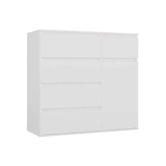 Komoda KOM-932-BIEL-MAT w kolorze białym to elegancki i funkcjonalny mebel, który doskonale sprawdzi się w sypialni, salonie, przedpokoju lub pokoju dziecka.