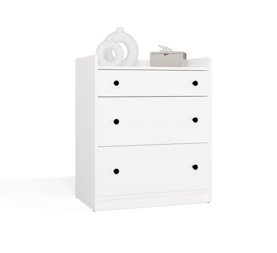 Dzięki 3 przestronnym szufladom z wygodnymi uchwytami zapewnia dużo miejsca do przechowywania ubrań, akcesoriów, tekstyliów czy artykułów dziecięcych.