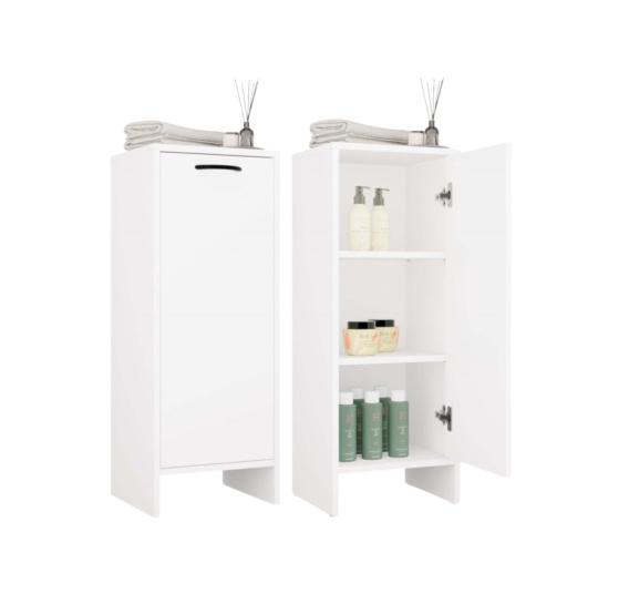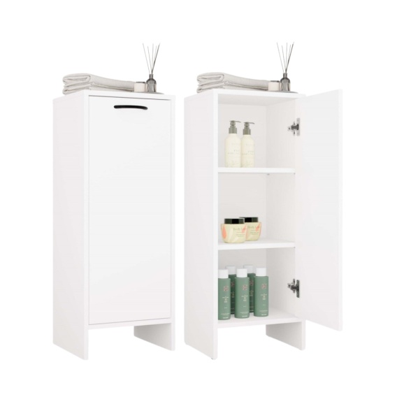Półsłupek do łazienki LAZ-1329-BIEL-MAT został wykonany z trwałych materiałów odpornych na wilgoć, co gwarantuje jego długowieczność. Subtelne wykończenie w odcieniu białego matu doskonale komponuje się z czarnym uchwytem, tworząc nowoczesne, a jednocześnie ponadczasowe połączenie. To mebel, który z łatwością dopasujesz do różnych aranżacji – od minimalistycznych po klasyczne.