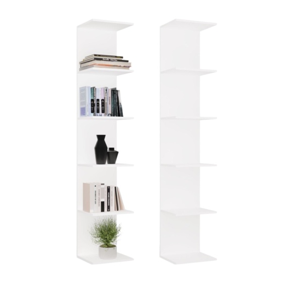 Mebel wyposażony jest w 6 otwartych półek, które umożliwiają wygodne przechowywanie książek, dokumentów, dekoracji oraz innych codziennych przedmiotów. Wysoka konstrukcja sprawia, że regał oferuje dużo przestrzeni użytkowej przy zachowaniu kompaktowych wymiarów.