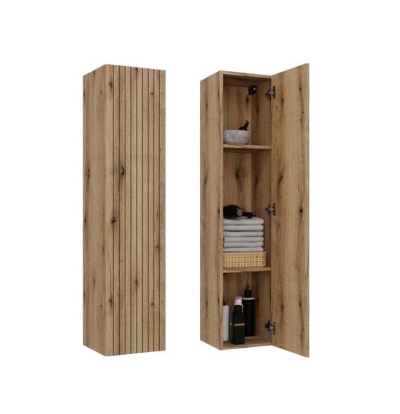 Słupek ma 29,5 cm głębokości, 31 cm szerokości i 135 cm wysokości, dzięki czemu zmieści się nawet w mniejszych łazienkach, zapewniając przy tym sporo miejsca do przechowywania.