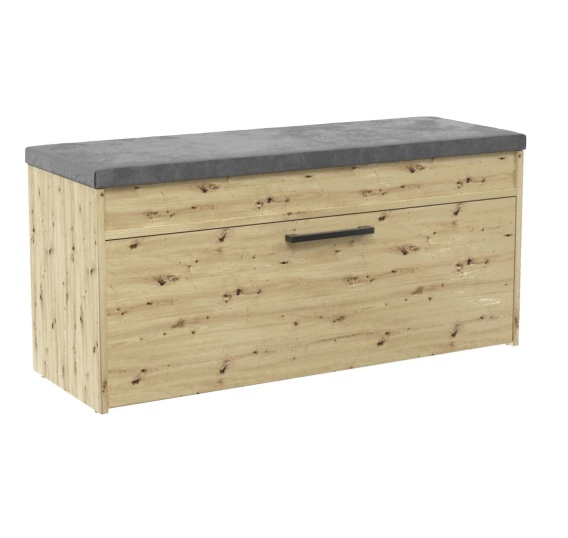 Szafka na buty z siedziskiem 100 cm BUT-206-ART została zaprojektowana z myślą o Twojej wygodzie. Szafka jest otwierana z przodu, a za drzwiami znajdują się dwie półki, które pomieszczą obuwie Twoje i Twojej rodziny. Dodatkowo, pod podnoszonym siedziskiem znajdziesz praktyczny schowek, idealny na drobne przedmioty, takie jak klucze, szaliki czy czapki.