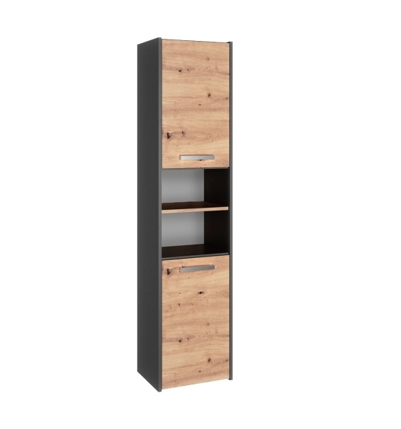 Szafka na plyny do lazienki LAZ-1311-ANT-ART wyróżnia się nowoczesną bryłą i eleganckim wykończeniem. Antracytowy korpus w połączeniu z frontami w kolorze dąb artisan tworzą stylowy kontrast, który doskonale wkomponuje się w różnorodne aranżacje łazienkowe. Prosta, ale elegancka forma mebla sprawia, że jest on nie tylko funkcjonalnym, ale i estetycznym elementem wyposażenia.