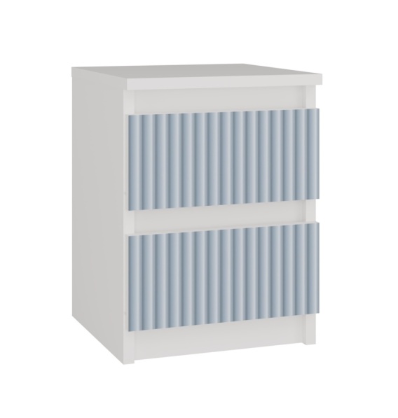 - Front szuflad - Pionowe wzory w kolorze niebieskim nadrukowane w nowoczesnej technologii