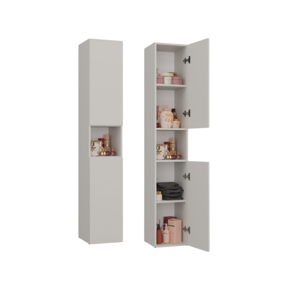 Dzięki swoim wymiarom – głębokość 30 cm, szerokość 31 cm, wysokość 174 cm – ta szafka jest idealnym rozwiązaniem do małych łazienek. Wysoki, smukły kształt pozwala na maksymalne wykorzystanie przestrzeni, jednocześnie nie zajmując dużo miejsca.