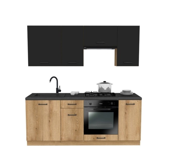 Ten zestaw mebli kuchennych został zaprojektowany z myślą o maksymalnej funkcjonalności i wykorzystaniu przestrzeni, nie tracąc przy tym na estetycznym wyglądzie. Jest to idealna opcja dla osób poszukujących praktycznych rozwiązań do swojego pierwszego mieszkania, kawalerki lub jako funkcjonalne wyposażenie kuchni na działce.